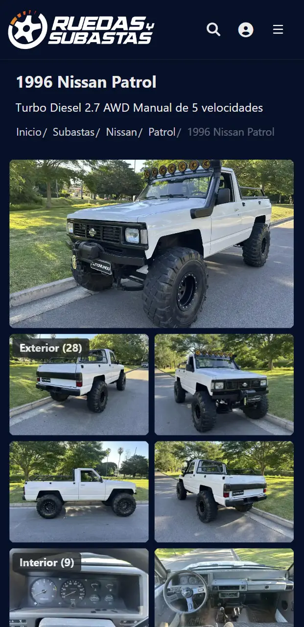 ruedasysubastas.com es una plataforma digital especializada en la compraventa de vehículos mediante subastas online, diseñada para conectar vendedores y compradores de forma transparente, segura y eficiente. En BigWeb desarrollamos una solución tecnológica integral que va mucho más allá de un sitio web, incorporando lógicas complejas de negocio, automatización de procesos y sistemas de pago y comunicación masiva.