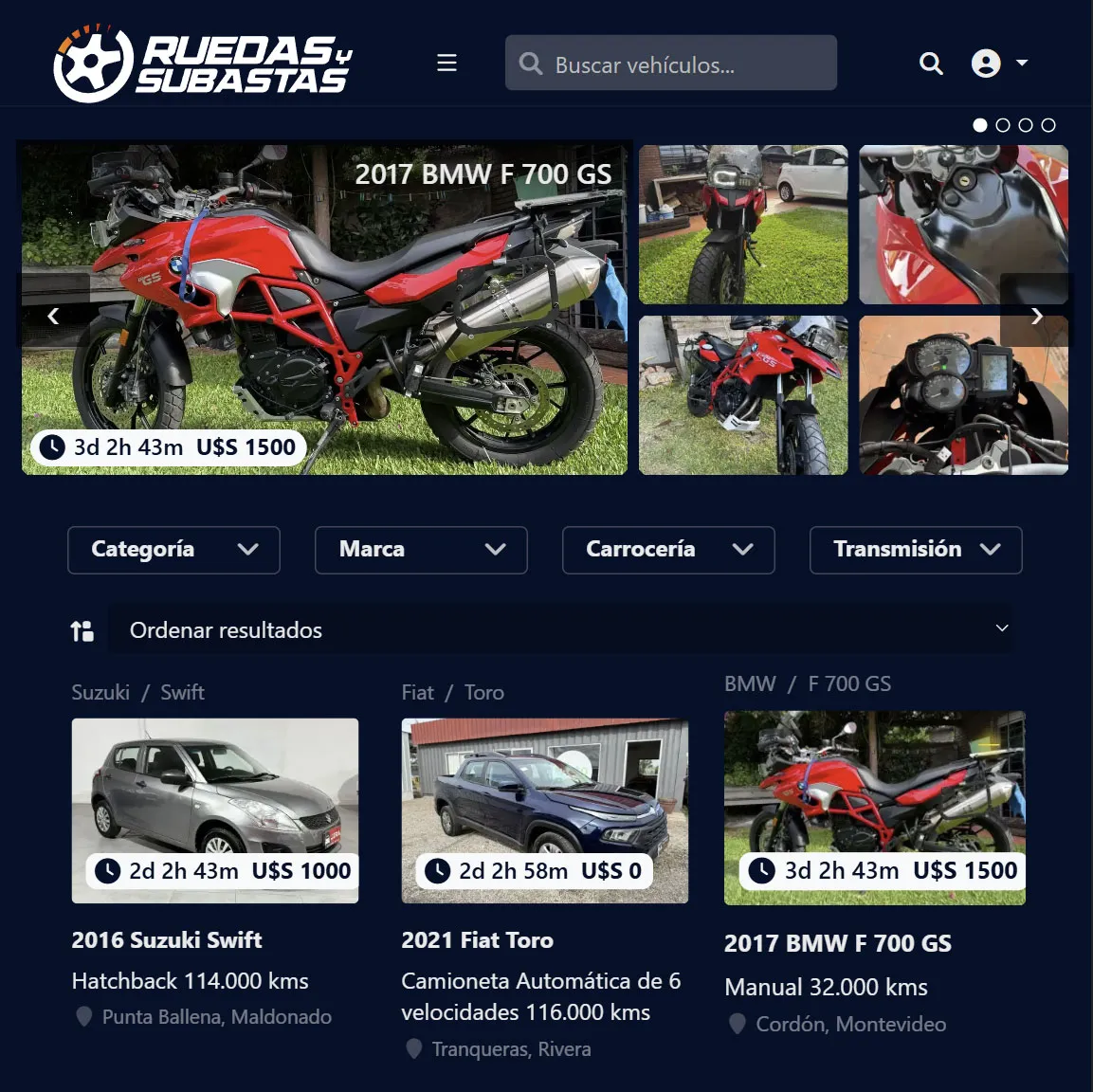 ]Ruedas y Subastas se está consolidando como una plataforma confiable en el mercado de subastas vehiculares online. La automatización de procesos y una experiencia de uso simple e intuitiva, tanto para usuarios como para administradores, han permitido al público uruguayo tener un primer contacto con las subastas online de forma eficiente, segura y transparente, sentando bases firmes para su crecimiento y expansión futura.