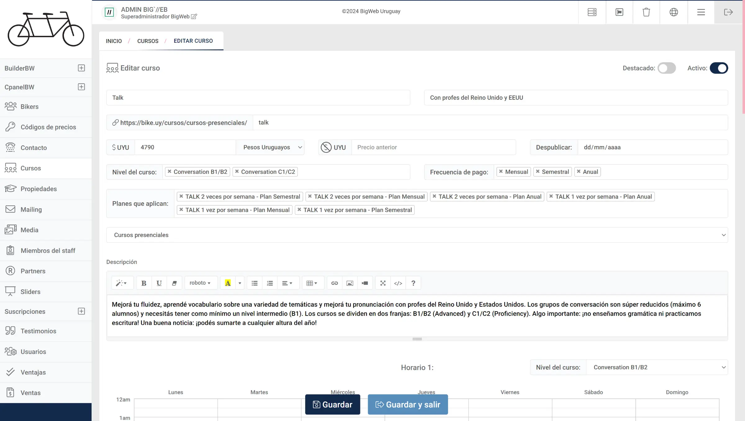 BIKE es una escuela de inglés para la cual desarrollamos el sitio web y una plataforma personalizada para la administración integral de sus cursos. A través de este panel, BIKE puede gestionar pagos de cursos y matrículas de manera eficiente y sencilla.