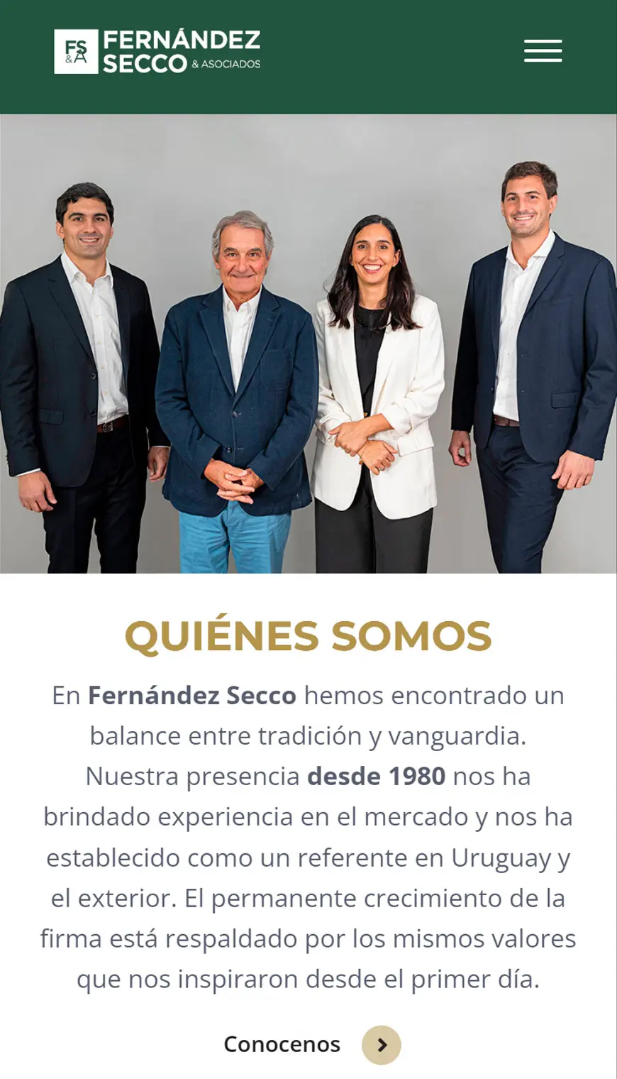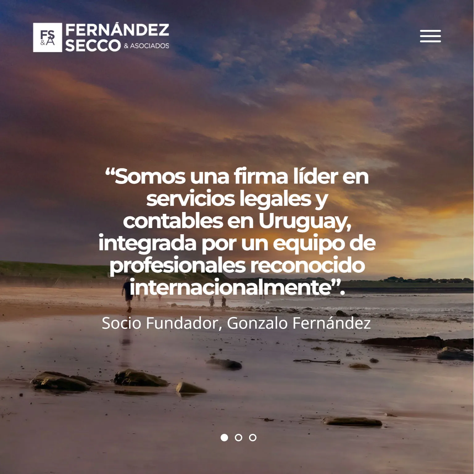 FernandezSecco.com es un sitio web institucional desarrollado para una prestigiosa agencia de abogados en Uruguay. Este proyecto destaca como una referencia en la creación de plataformas que presentan servicios profesionales y transmiten seriedad, confianza y profesionalismo, aspectos clave en el sector jurídico.