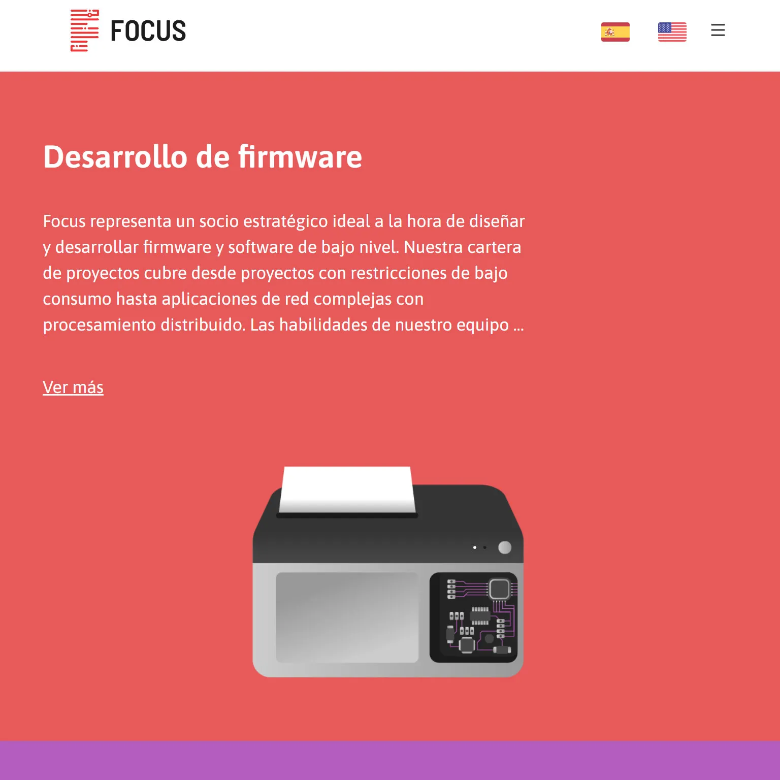 ]Animaciones Lottie: La web de Focus incorpora animaciones complejas realizadas con la galería Lottie de SVGs, que permite utilizar archivos en formato JSON. Esta tecnología ofrece animaciones ligeras y eficaces, superando el rendimiento de GIFs animados o videos tradicionales.