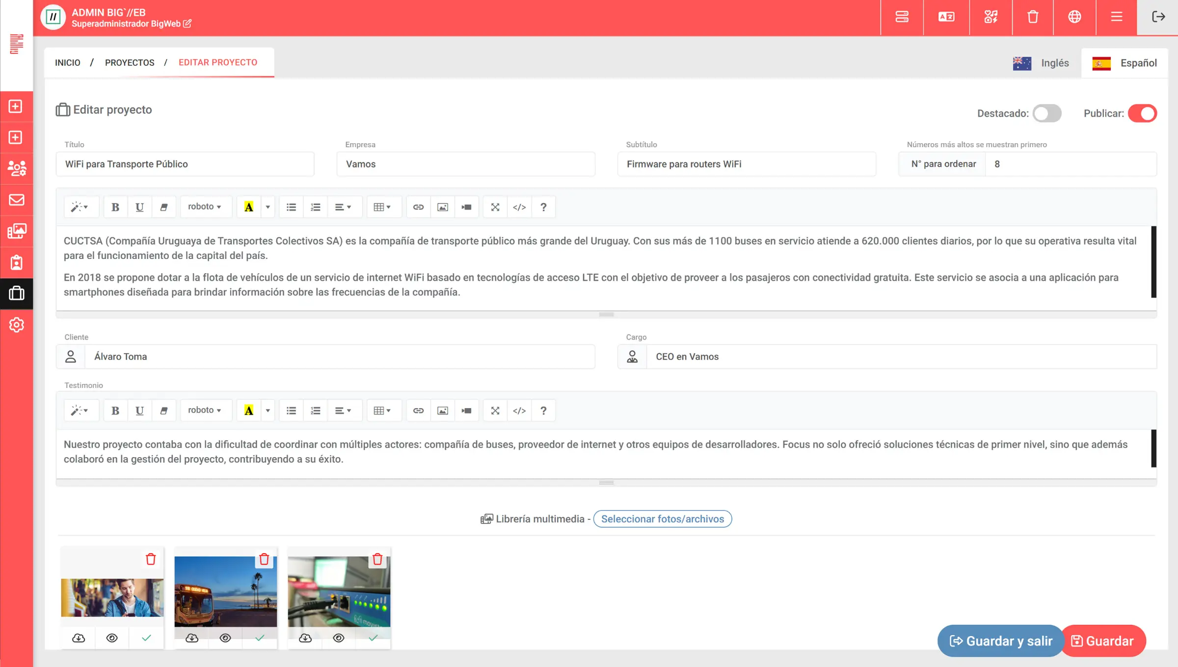 Sitio multilingüe: El sitio web de Focus está disponible en español e inglés, permitiendo a los usuarios acceder al contenido en ambos idiomas, mejorando así la accesibilidad y alcance internacional. Los administradores pueden actualizar contenido en ambos idiomas y editar todas las traducciones desde el panel de control.