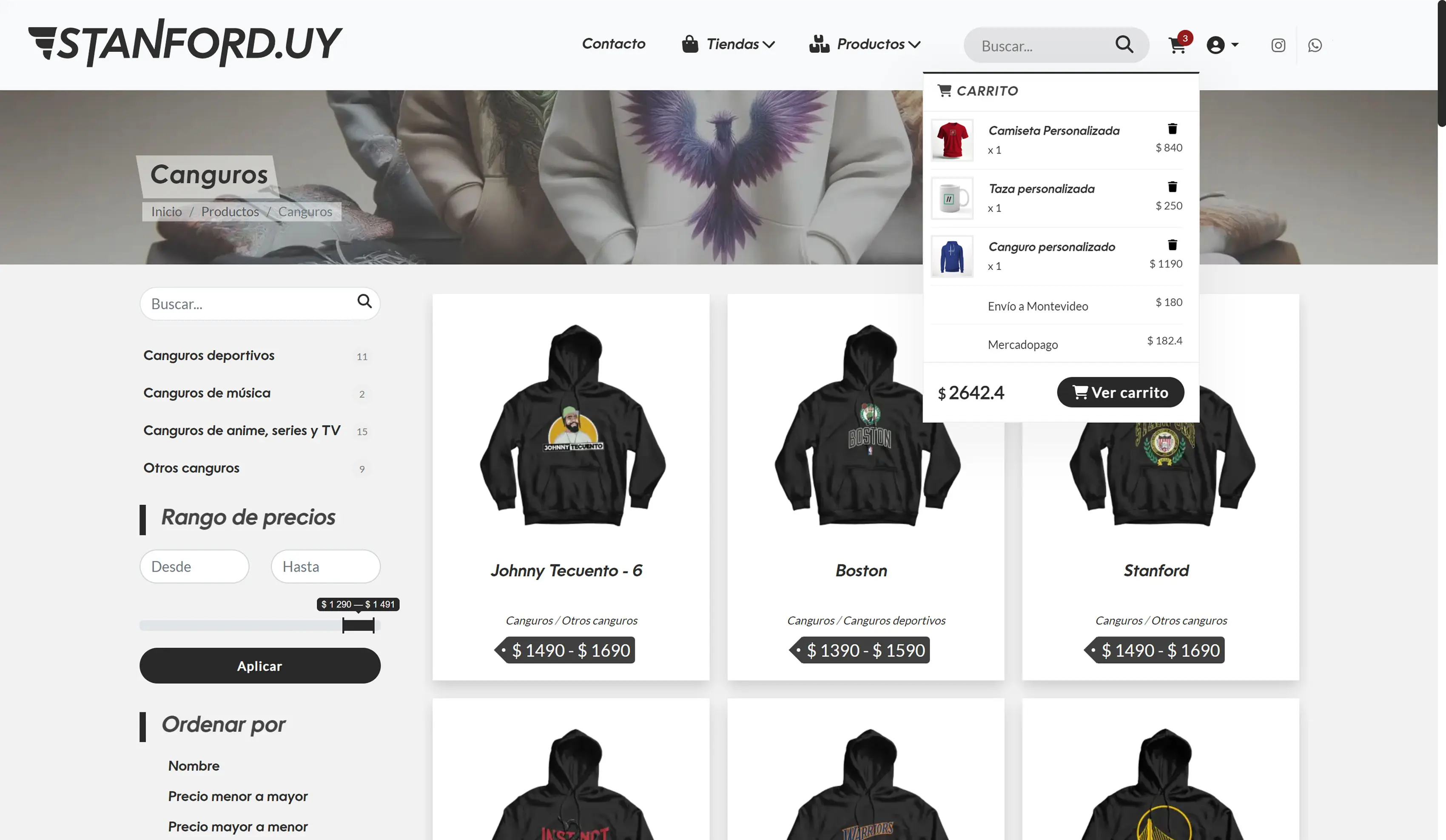 Tienda Online Completa: Stanford.uy es una tienda en línea totalmente funcional que permite a los clientes realizar compras de manera sencilla. La plataforma integra múltiples métodos de pago y opciones de envío para mayor conveniencia. Además, cuenta con herramientas para la creación de ofertas, descuentos y promociones, lo que facilita la gestión de campañas comerciales y mejora la experiencia de compra.
